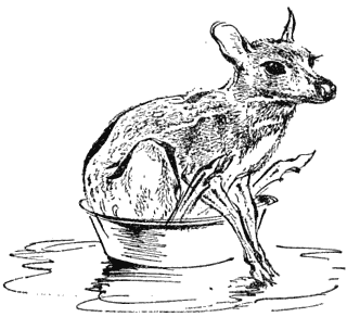 Нашата водна антилопа не правеше изключение. Това удивително кротко същество обожаваше да го чешат зад ушите и по коремчето и без да прикрива своето задоволство, можеше да изгълта толкова охлюви и бръмбари, колкото му предоставите. Освен това през свободното си време правеше опити да се къпе в легена, в който с големи усилия потапяше едва задните си части.