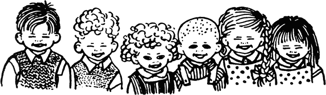 Това сме Ласе, Бусе и аз, после Уле, после Брита и Ана. Ние сме децата от село Шумотевица. Ласе, Бусе и аз живеем в Средната къща, Уле живее в Южната, а Брита и Ана живеят в Северната.