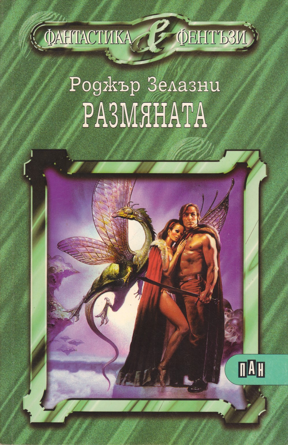 РАЗМЯНАТА. 1997. Изд. Пан, София. Биб. Фантастика и фентъзи, No.2. Роман. Превод: [от англ.] Светлана КОМОГОРОВА-КОМО [Changeling / Roger ZELAZNY]. Формат: 16/15/58. Страници: 224. Цена: 2500.00 лв. ISBN: 954-657-135-0.