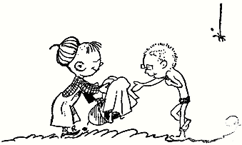 Пчелица дълго търси Мърморко с откраднатите дрехи, а той през това време се беше спотаил в гъстия репейников буренак.