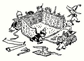 Но балонът не се пукаше, а всяка минута ставаше все по-голям и по-голям. Скоро той се наду дотолкова, че за да могат да го мажат отгоре и отстрани, момченцата трябваше да се катерят на ореха, който растеше сред двора.