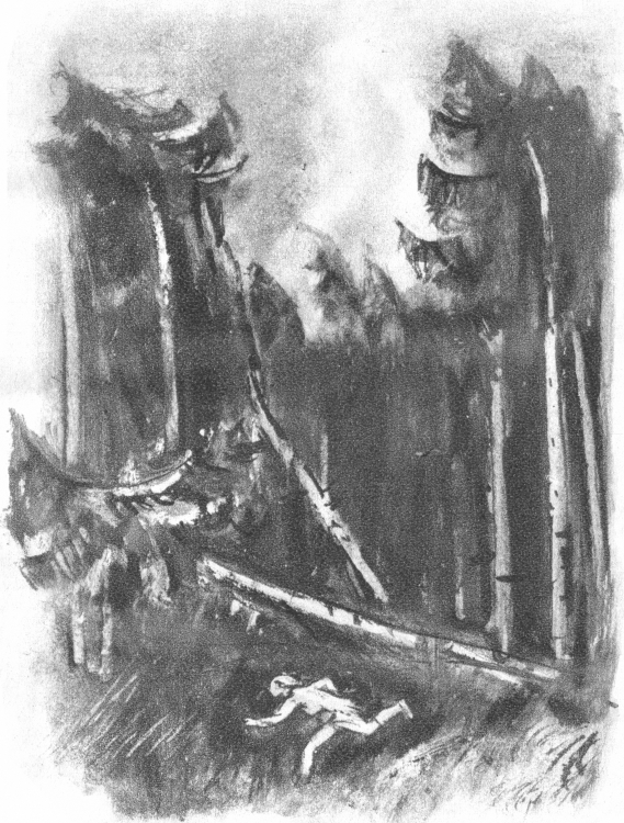— Петер Мунк — отговорил великанът и му хвърлил страшен пронизващ поглед, — пътят ти не минава през тази гора.